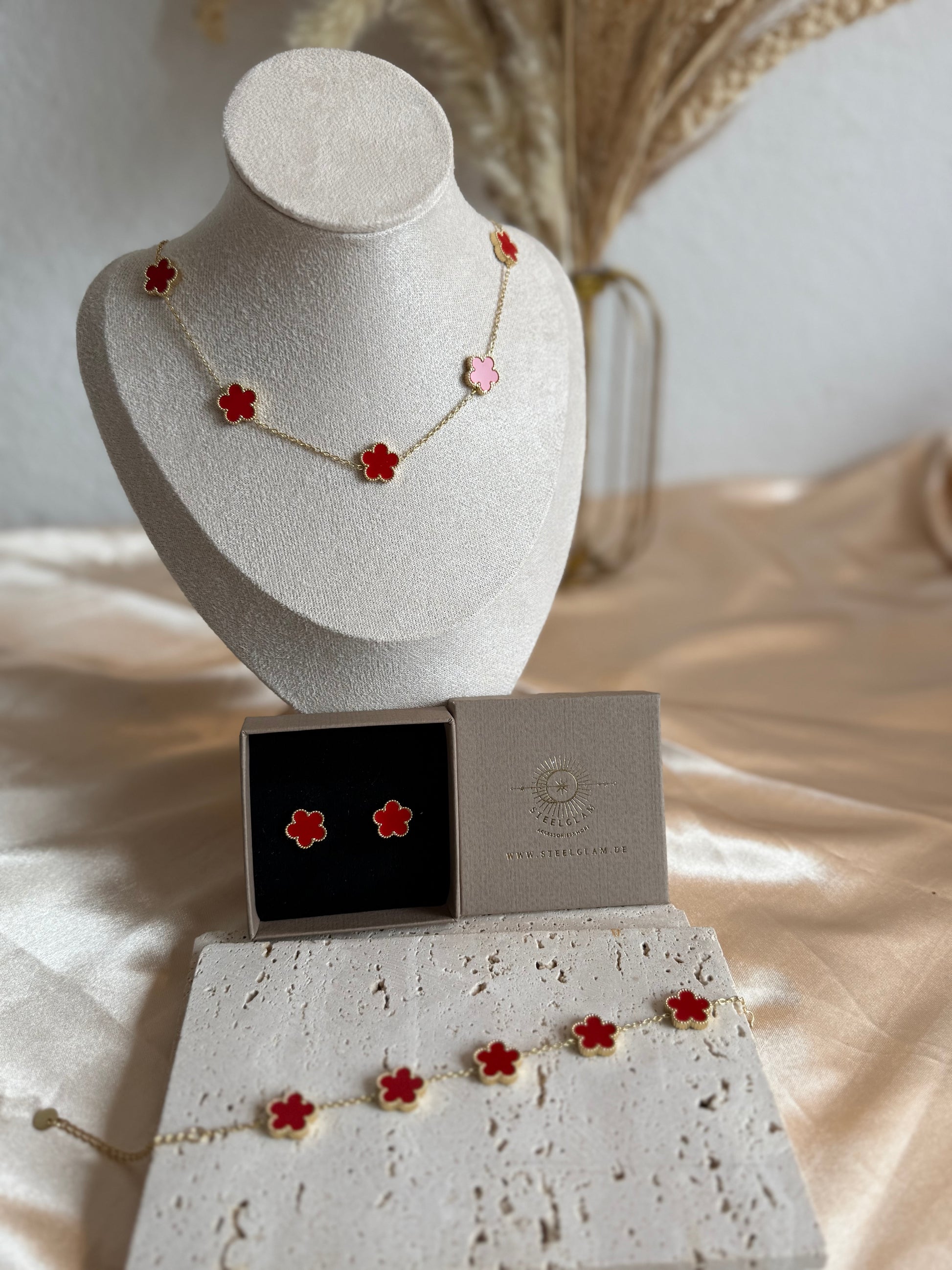 Eline in Red Five-petaled flower Necklace